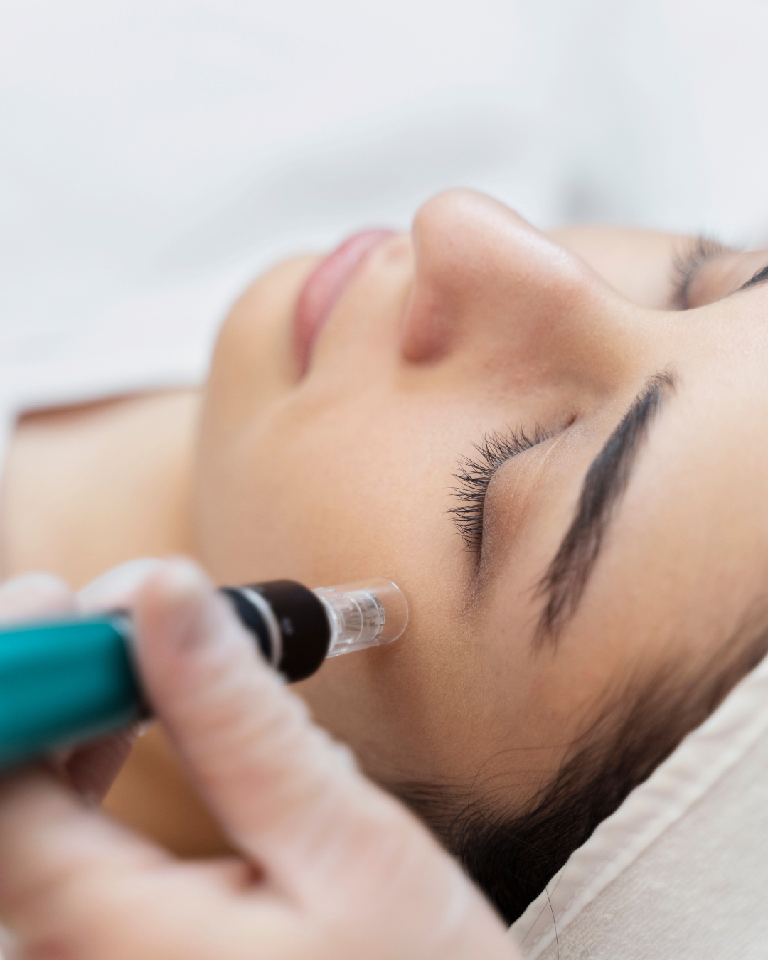 tratamento que estimula a produção natural de colágeno. Excelente para rejuvenescer a pele, suavizar cicatrizes de acne e reduzir linhas finas, proporcionando textura mais firme e uniforme.